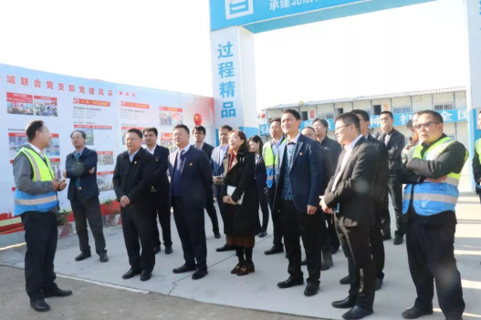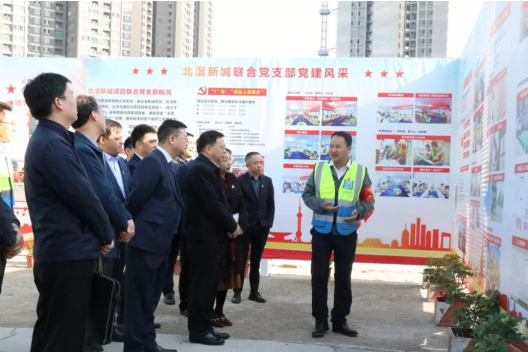 12月27日,廣東省住房城鄉(xiāng)建設(shè)廳黨組書(shū)記、副廳長(zhǎng)趙坤,房地產(chǎn)處處長(zhǎng)陳必暖,質(zhì)安處處長(zhǎng)許欣毅等一行領(lǐng)導(dǎo)蒞臨廣東騰越梧桐廣場(chǎng)聯(lián)合黨支部調(diào)研指導(dǎo)。碧桂園集團(tuán)黨委委員、副總裁李靜,碧桂園集團(tuán)黨委委員、廣東騰越黨委書(shū)記、總經(jīng)理馬小軍,碧桂園集團(tuán)辦副主任、黨群社責(zé)部總經(jīng)理徐舒揚(yáng),廣東騰越黨委副書(shū)記、執(zhí)行總經(jīng)理鄧培初陪同出席。