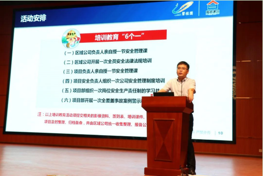 會(huì)議伊始,公司總經(jīng)理助理兼資深安全總監(jiān)呂偉軍對(duì)公司安全生產(chǎn)月活動(dòng)方案進(jìn)行了詳細(xì)地介紹,進(jìn)一步明確了公司安全生產(chǎn)月活動(dòng)開(kāi)展的目的、意義及相關(guān)要求。隨后,莞深公司及智林機(jī)器人創(chuàng)研中心項(xiàng)目分別從區(qū)域公司和項(xiàng)目管理層面,就安全管控亮點(diǎn)及要點(diǎn)進(jìn)行了分享,充分展現(xiàn)了騰越建筑安全“三級(jí)管控”成效及成果。