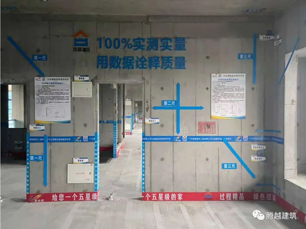 在大面積施工前,為保證成型效果,項(xiàng)目?jī)?yōu)先組織施工結(jié)構(gòu)樣板間,專人跟蹤實(shí)測(cè)實(shí)量以及技術(shù)交底工作。驗(yàn)收無(wú)誤后,方可進(jìn)行大面積鋪排,讓施工人員對(duì)質(zhì)量驗(yàn)收標(biāo)準(zhǔn)心中有數(shù),有效促進(jìn)施工質(zhì)量的整體提升。