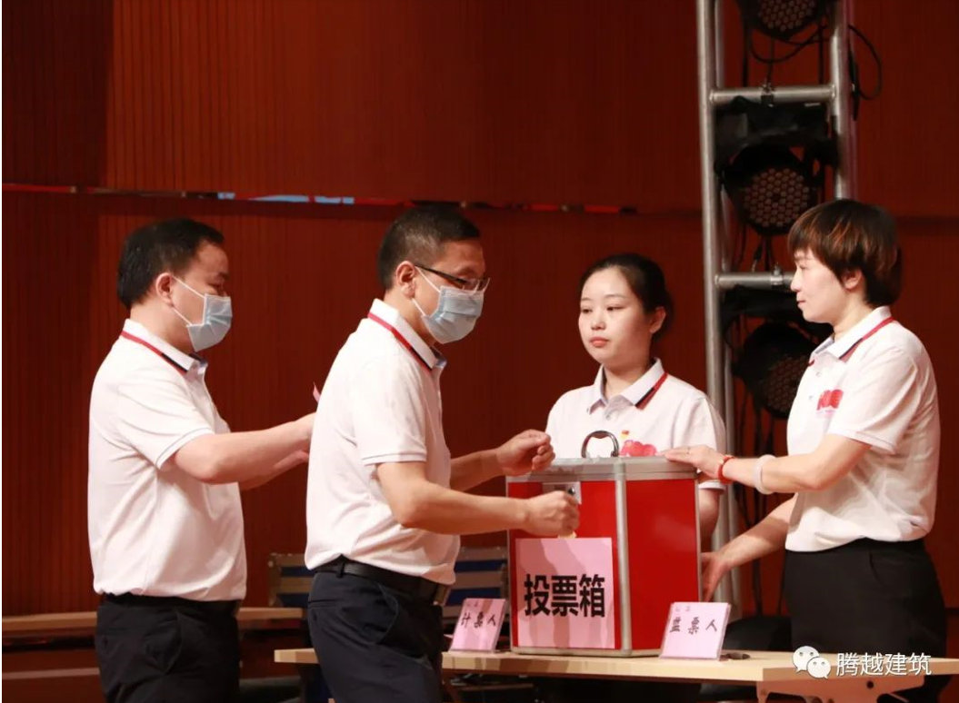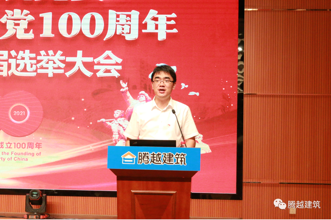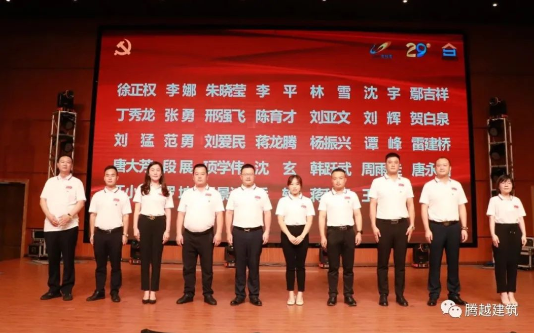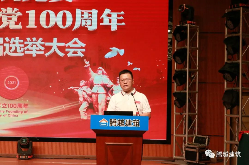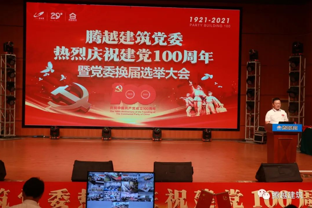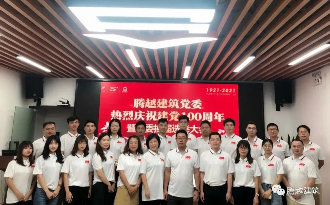 2021年6月30日,騰越建筑黨委熱烈慶祝建黨100周年暨黨委換屆選舉大會在騰越建筑總部隆重舉行,大會成功選舉并產(chǎn)生了騰越建筑新一屆黨委班子。