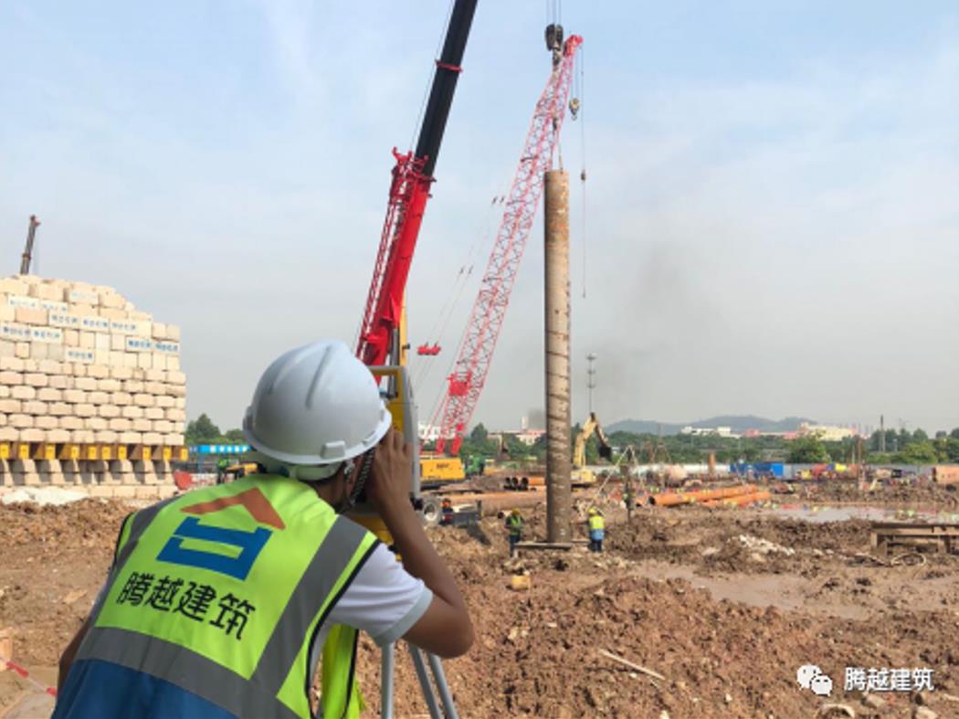 莞深公司承建碧桂園總部三期A區(qū)項目建設(shè)施工過程中,受到工期緊張、施工場地空間狹小等多因素的條件限制,項目精準策劃集中推廣采用多項騰越獨創(chuàng)技術(shù),一樁一柱、地下室局部逆作法進行施工,從而達到上部結(jié)構(gòu)與建筑同時穿插施工、車庫頂板材料堆放場地布置等提前達到施工條件的目的。施工布署靈活性強,施工快捷,易于保證質(zhì)量,大幅縮減了施工周期,同時保障了工程順利進行。