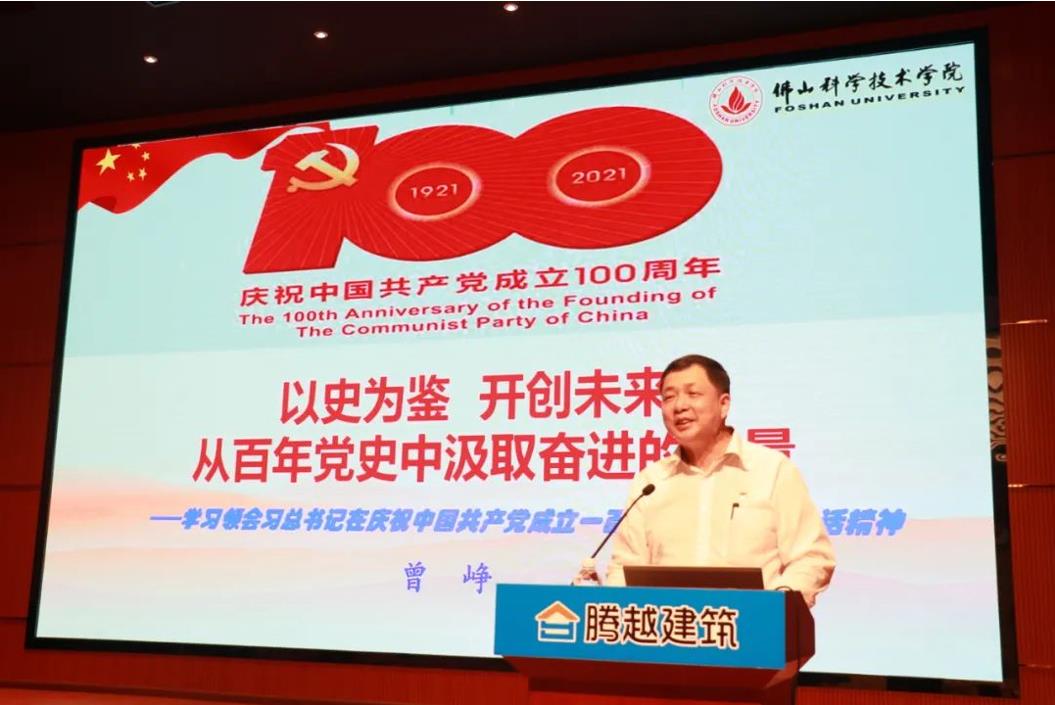 本次共建活動,騰越建筑黨委還有幸邀請了佛山科學技術(shù)學院黨委書記、教授曾崢為騰越建筑全體黨員講授專題黨課,曾教授以《以史為鑒,開創(chuàng)未來——從百年黨史中汲取奮進的力量》為題,全面解讀了中國共產(chǎn)黨發(fā)展簡史,深入淺出,以史為鑒講述了中國共產(chǎn)黨究竟是什么樣的政黨,提出中國共產(chǎn)黨為什么“能”、馬克思主義為什么“行”,中國特色社會主義為什么“好”三大問題。讓騰越建筑黨員們在黨史學習中感受思想偉力,增強政治領(lǐng)悟力、判斷力,傳承紅色基因,發(fā)揚革命精神,堅定發(fā)展信心,不斷助力黨委促進黨建工作和業(yè)務(wù)工作有機融合,推進學習型、服務(wù)型、創(chuàng)新型的黨組織建設(shè),實現(xiàn)非公企業(yè)黨建工作再上臺階。