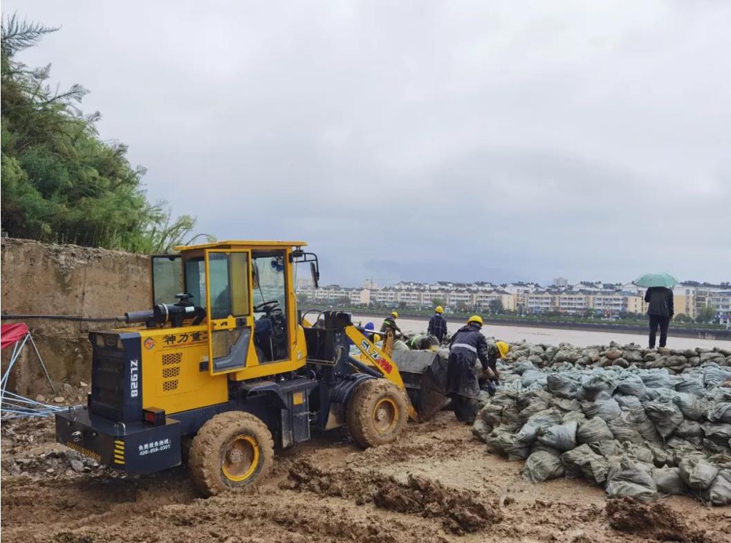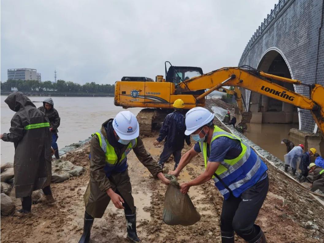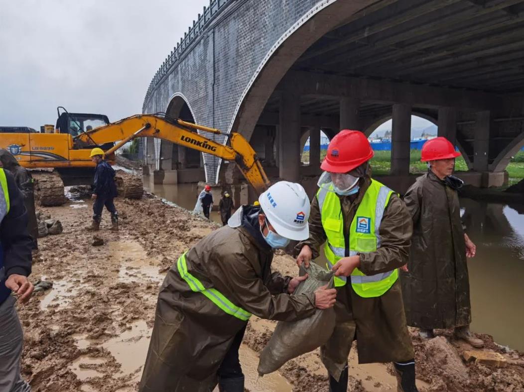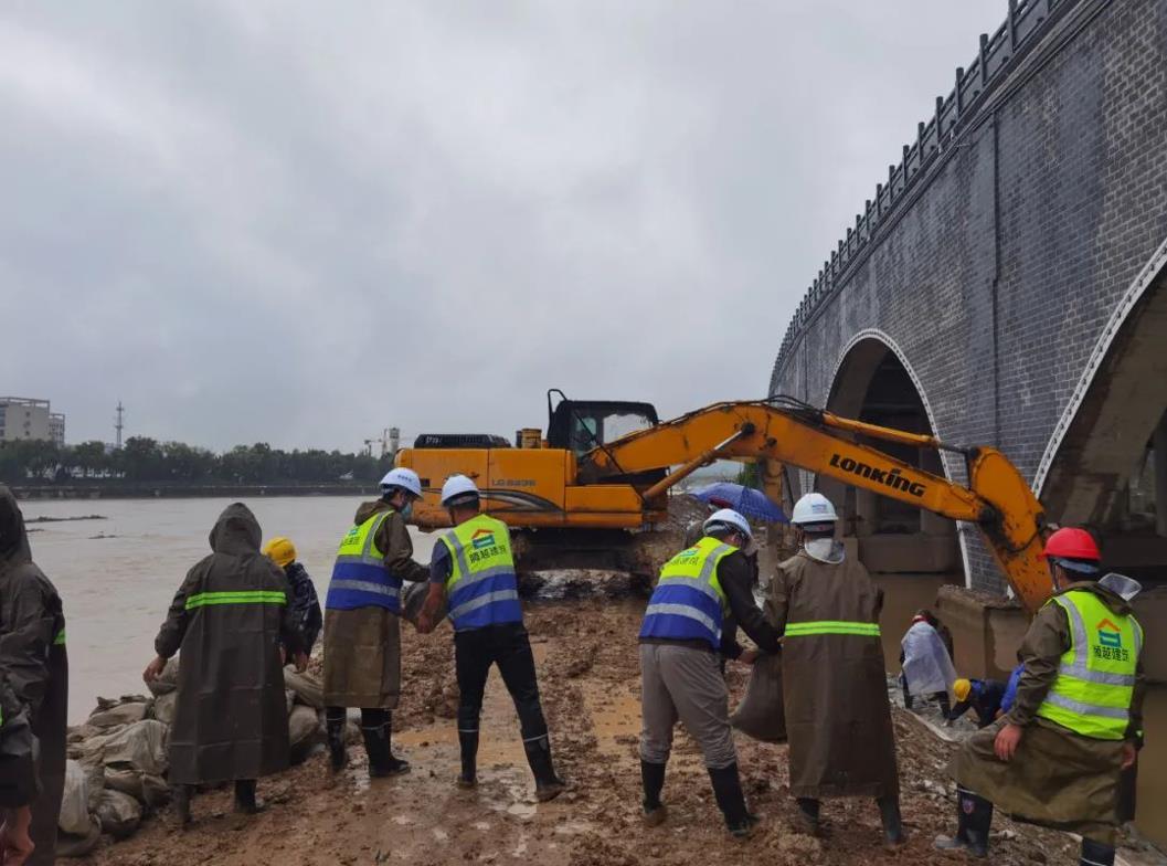得知相關(guān)情況后,騰越建筑鄂西公司房縣十里江灣項(xiàng)目團(tuán)隊(duì)短暫討論后,結(jié)合實(shí)際情況決定派出10名具有搶險(xiǎn)安全意識(shí)的管理人員及30名專業(yè)工友,分別組成兩組搶險(xiǎn)突擊隊(duì),并投入工程機(jī)械挖掘機(jī)、推土機(jī)各1臺(tái),前往馬欄河?xùn)|側(cè)七拱橋橋頭和橋中段防汛火線,全力支援河岸防洪堤加固工作。