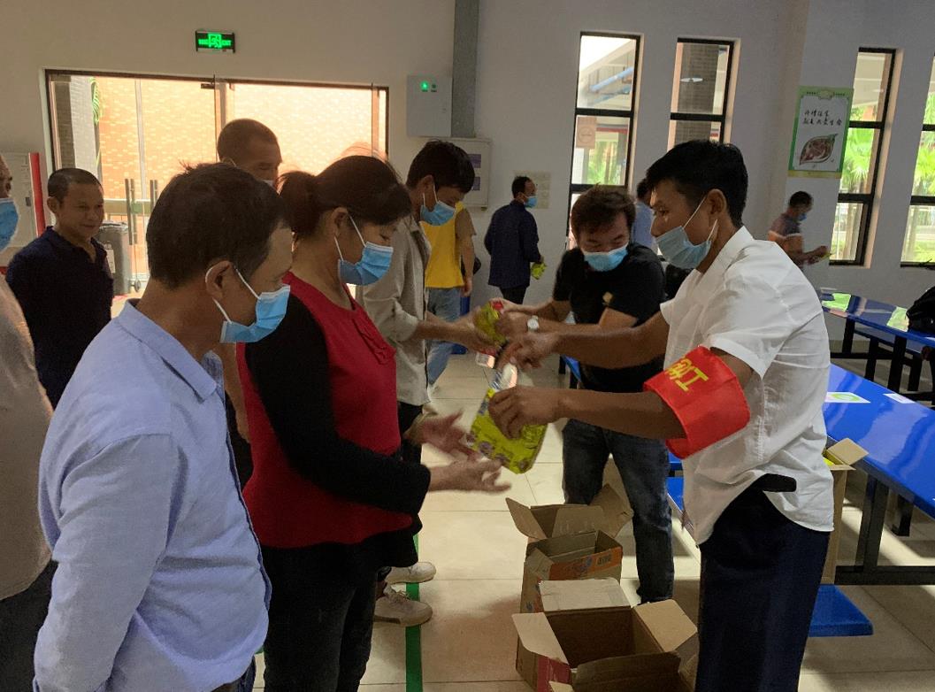江中公司珠海平沙海納苑項目臺風(fēng)中為民工發(fā)放物資