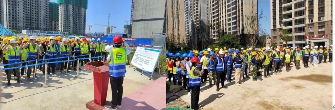 河南公司碧桂園天璽灣居項目位于鄭州市金水區(qū)博學路與楊金路交叉口東南角,總建筑面積約14.98萬㎡,裝配率達51%。作為騰越建筑河南公司第一個裝配式項目,自開工以來,項目團隊就嚴格要求,按照集團和公司安全管理制度要求,高度重視現(xiàn)場施工標準化管理水平,以創(chuàng)建標桿工地為目標,嚴抓安全生產(chǎn),在日常項目建設中,項目團隊從前期策劃、準備實施、過程管控等方面層層入手,并在安全管理過程中不斷總結、改進,始終貫徹落實“安全第一,預防為主,綜合治理”的方針,將安全文明施工擺在工作前列。