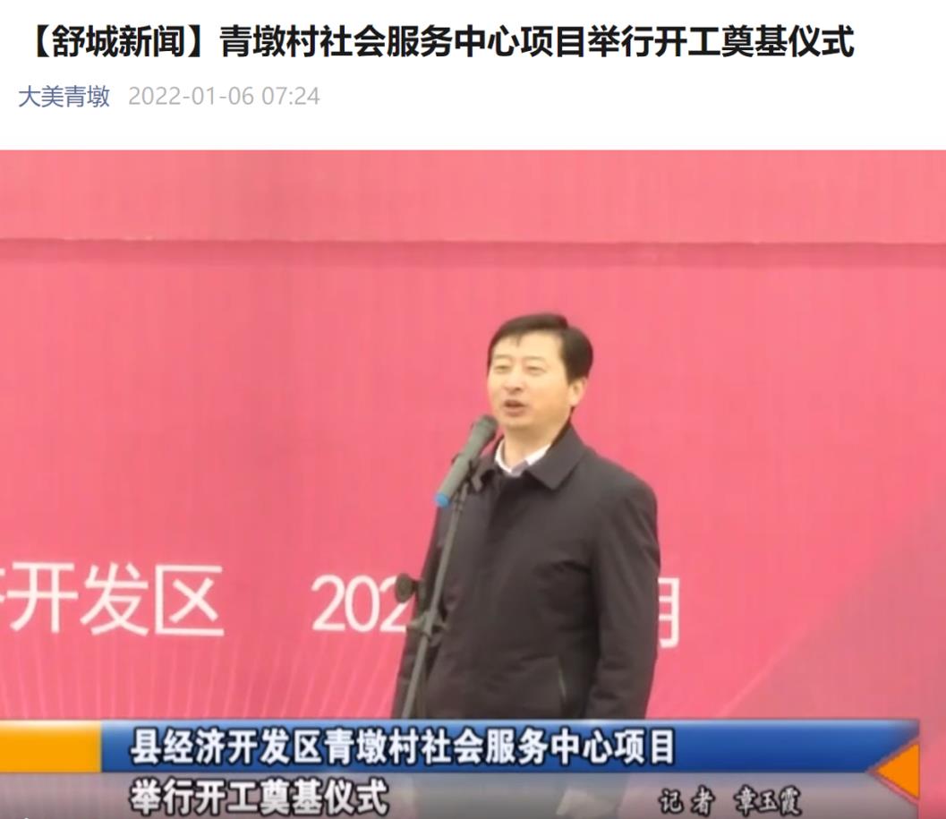 據(jù)悉,青墩村早在2014年就被確定為舒城縣80個建檔立卡貧困村之一,此次青墩村扶貧項目主要為修建青墩村社會服務中心。項目奠基儀式上,舒城縣縣委副書記兼縣長王萬喜等政府領(lǐng)導及青墩村村代表、碧桂園安徽區(qū)域總裁孫財皆出席了儀式。