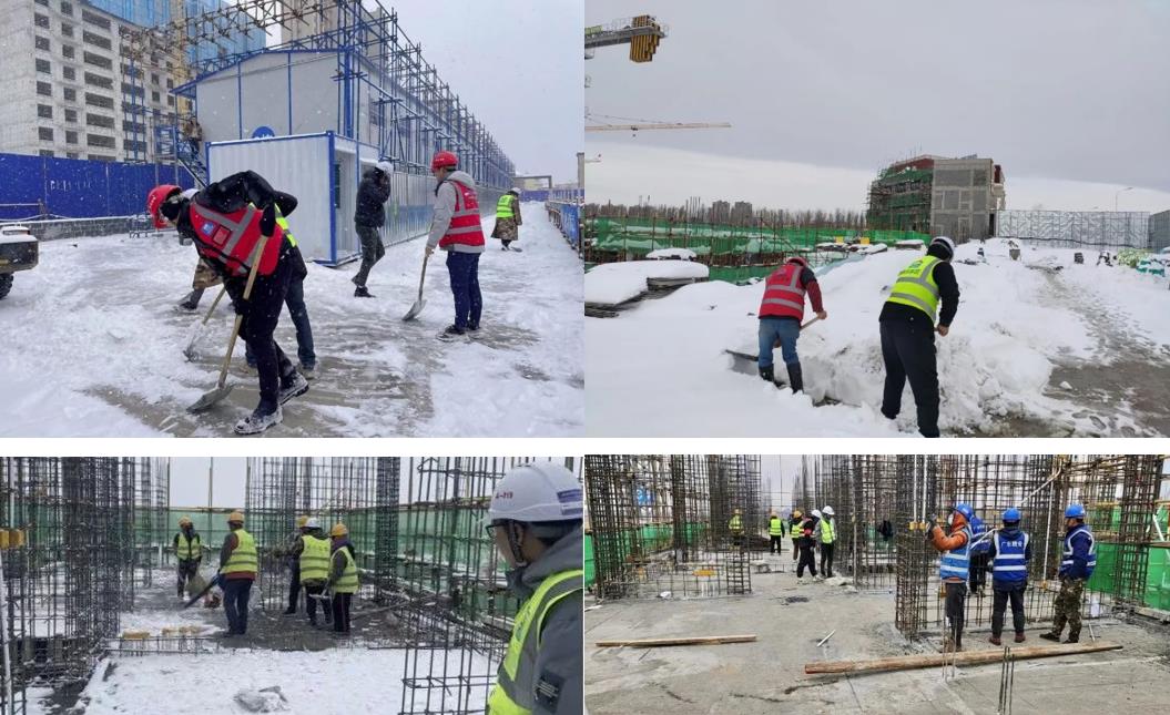 因海城位于遼東半島,地處東北地區(qū),氣候寒冷,與祖國南端的廣東省比較,冬季一般長達6個月時間。2022年2月15日,東北公司海城碧桂園河南岸項目傳來開工喜訊,但寒冷的風雪疊加疫情防控后的復工,給海城碧桂園河南岸項目復工復產(chǎn)工作蒙上了一層陰影。