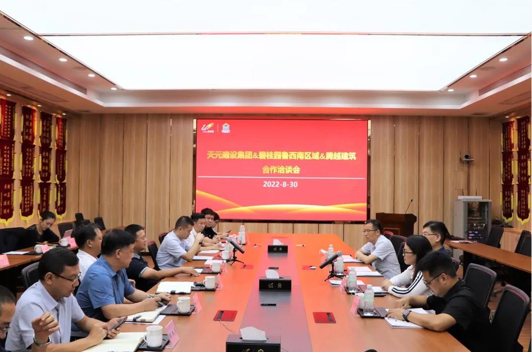 2022年8月30日,天元建設(shè)集團副總裁兼一公司總經(jīng)理劉士龍、一公司工會主席兼副總經(jīng)理陳洪俊、副總經(jīng)理于力、成本部總經(jīng)理陳曉宇一行領(lǐng)導(dǎo)到訪騰越建筑進行合作洽談。碧桂園魯西南區(qū)域總裁王立、騰越建筑總經(jīng)理馬小軍攜公司領(lǐng)導(dǎo)班子及相關(guān)職能負責人出席。雙方就進一步深化合作,實現(xiàn)企業(yè)互利共贏進行了深入探討和交流。