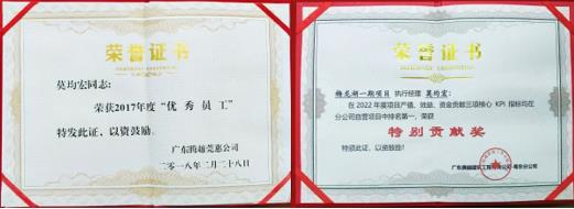 2013年4月,莫均宏加入騰越建筑大家庭,先后參加了四會(huì)豪園和潼湖科技小鎮(zhèn)等多個(gè)項(xiàng)目建設(shè),先后榮獲2015年度“碧桂園集團(tuán)飛天獎(jiǎng)--杰出員工”、2017年度分公司“優(yōu)秀員工”、2022年度分公司“特別貢獻(xiàn)獎(jiǎng)”、2023年騰越建筑“崗位英雄”稱號(hào)。2021年所在項(xiàng)目潼湖科技小鎮(zhèn)鳳凰國(guó)際商務(wù)中心1-5樓榮獲第十三屆廣東省土木工程“詹天佑故鄉(xiāng)杯”獎(jiǎng)項(xiàng)。