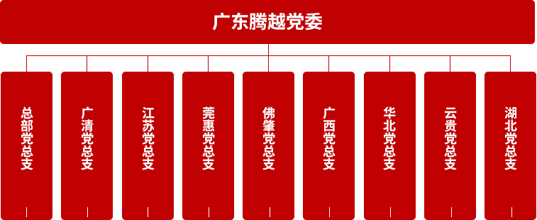 廣東騰越公司黨總支2014年3月成立,2018年10月 升格為黨委,下設 9個直屬黨總支,共有 42 個項目黨支部,有黨員 540余人,積極分子222人,農(nóng)民工積極分子80人。近年來,騰越黨委按照上級要求,積極推動企業(yè)發(fā)展與黨的基層組織建設相結(jié)合、提高管理團隊素質(zhì)與黨的組織工作相結(jié)合、促進企業(yè)文化建設與員工隊伍建設相結(jié)合的方針,結(jié)合企業(yè)實際堅持黨建創(chuàng)新,取得較好成效。